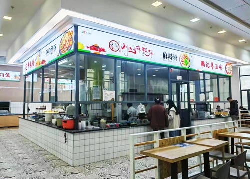 当一些企业员工还在吐槽自家食堂的“老三样”时,别人家的餐厅——山东烟台某医院的健坤味来智选餐厅里, “国际美食小吃街”各个摊位前正排起长龙,热闹非凡。